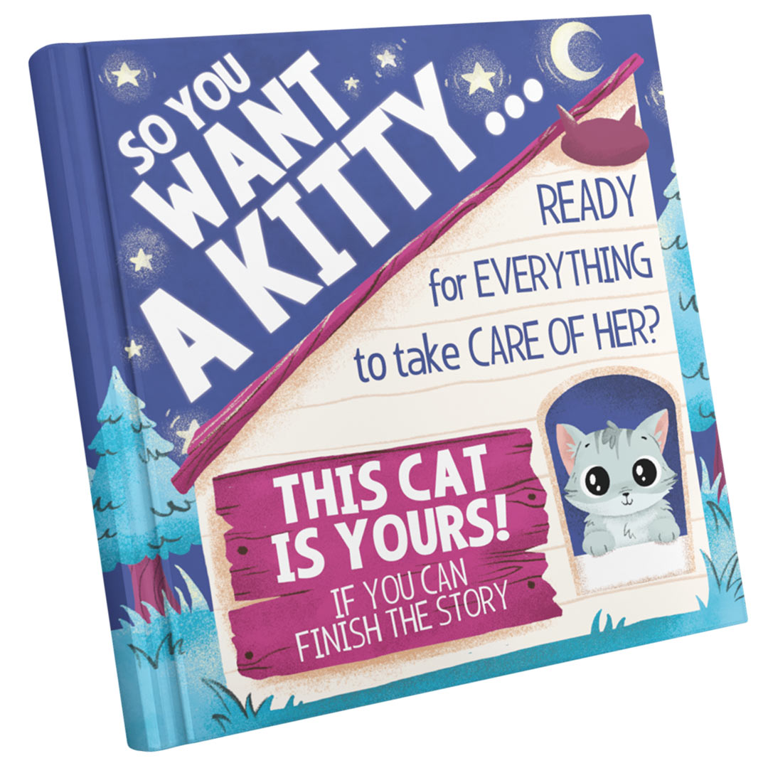 Page after page of this cat book for children you’ll watch her grow, make noise, and drag stinky things! She will also paw and bat at the air, purr for cuddles, snuggle close, and squeeze into the silliest spots…making reading impossible!